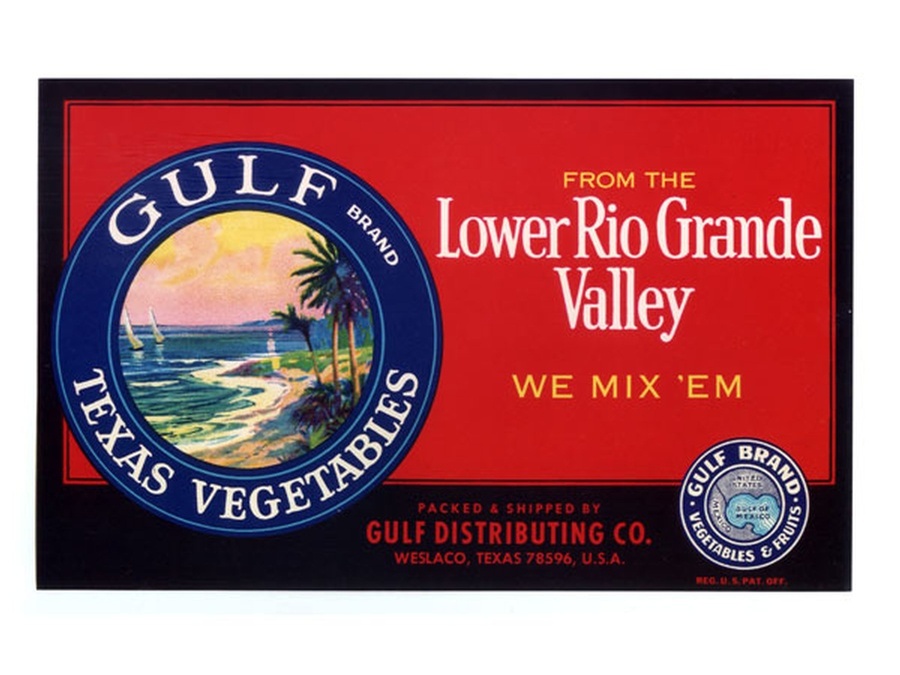 The label shows the Texas Gulf coast with a pair of sailboats in the Gulf. We also have the larger 1940s labels. Weslaco was named after the W. E. Stewart Land Company who developed the area and is the geographic center of the Rio Grande Valley making it a center for business throughout the Valley.
