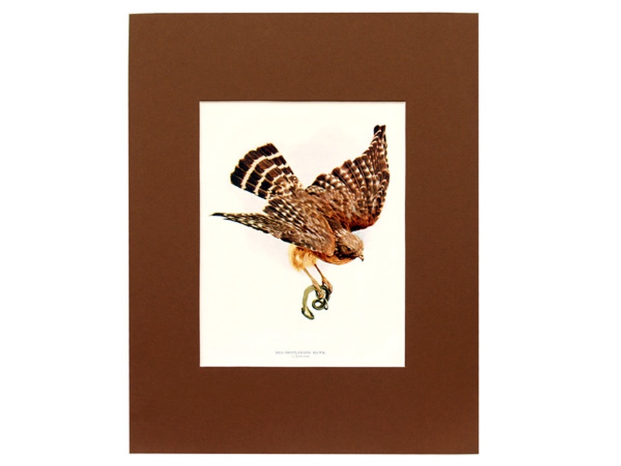 This antique image of the hawk is 1/3 Life-size and nearly jumps off the page. He has a small green snake in his talons. The print is professionally matted in a large 11” x 14” deep brown colored matte to setoff the beauty of the bird. Our vintage prints are shipped in a plastic sleeve between cardboard stiffeners to arrive in perfect condition.