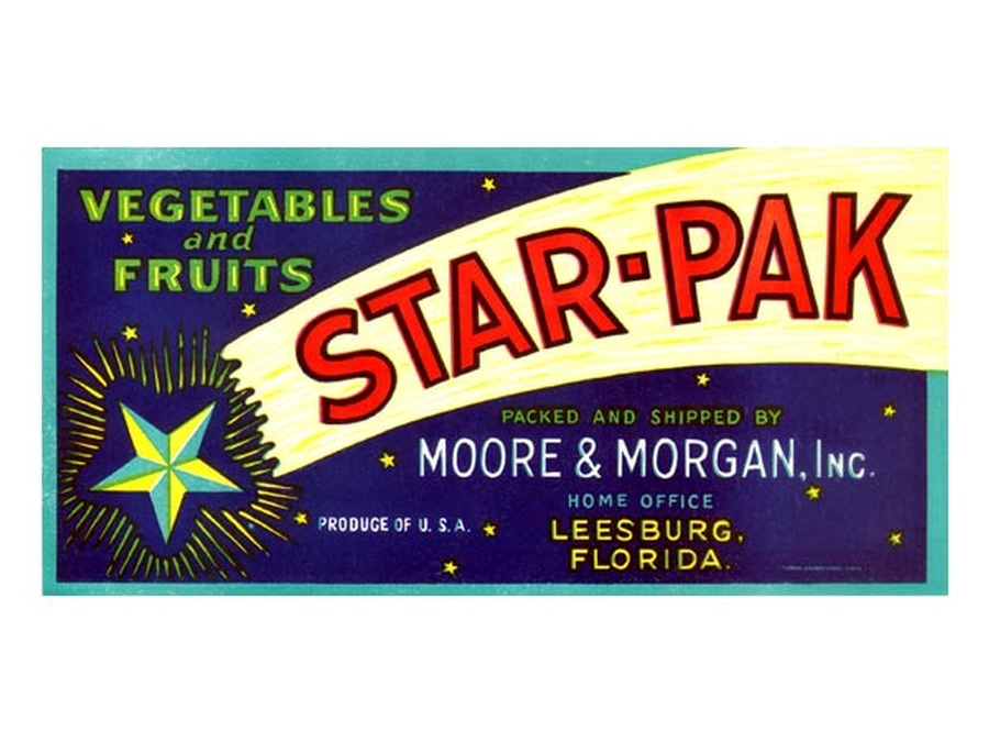 These Star-Pak Brand Vegetable and Fruits crate label was found in an old defunct packing house in Center Hill, Florida. Center Hill was known as the Cucumber Capital of the World and they shipped peppers and cucumbers out by the train load. This label is circa 1940s and measures 8" Wide x 4" High. The lithographer was Florida Grower Press from Tampa, Florida.