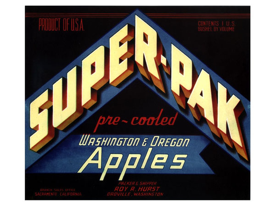 This seldom seen crate label measures 10” Wide x 9” High and is in mint condition. The label was for crates of Washington and Oregon Apples and dates back to the 1940s. I think its interesting that the apples were “pre-cooled”, even though they road East in non-refrigerated train cars. These apples were picked, packed, and shipped by Roy R. Hurst of Oroville, Washington. They also had a branch sales office in Sacramento, California.