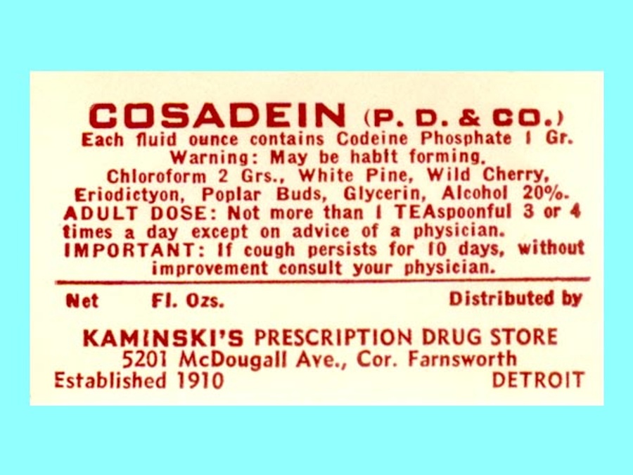 Cosadein is a drug that was used to relieve coughs. It contained chloroform and codine among other things. Generally it contained marijuana, although this label does not indicated that.