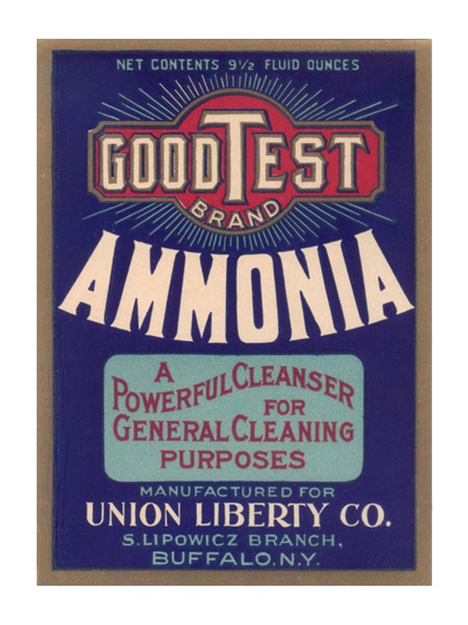 This large vintage label went on 12” tall clear multi-sided glass bottle that held 9.5 fluid ounces. We believe the label comes from the 1930s and measures 5” Tall x 3.75” Wide. It is a great looking label with sharp coloring in perfect condition. The ammonia was manufactured for the Union Liberty Company, S. Lipowicz Branch of Buffalo, New York.