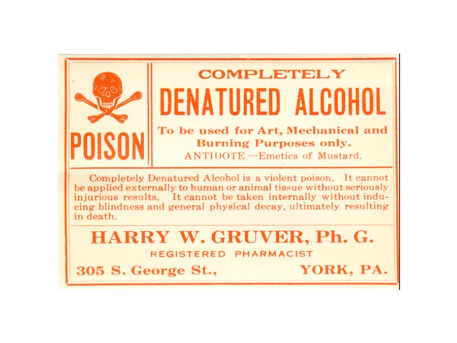 Denatured Alcohol poison label - York, PA.