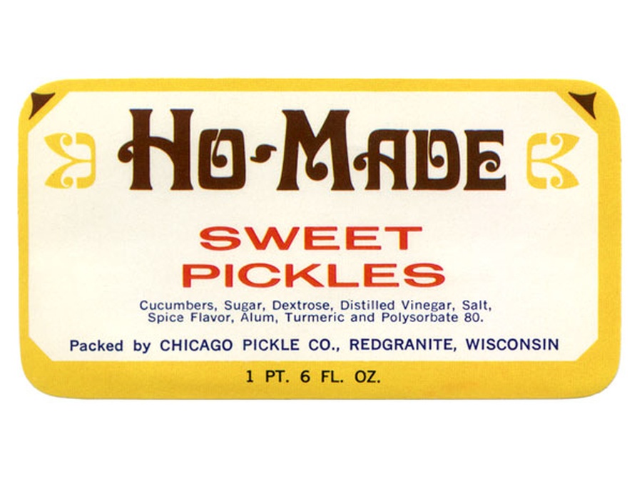 This 3.6” Wide x 2” High vintage label for Ho-Made Sweet Pickles went on a 1 pint, 6 ounce jar and dates to the 1950s. The pickles were packed by Chicago Pickle Company of Redgranite, Wisconsin. The “Ho” was for Home Made not the popular phrase of today.
