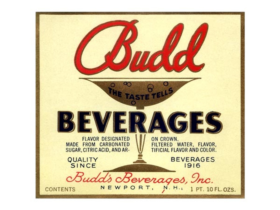 Budd’s Beverages, Inc. was founded by Alexander Budnitz in 1916, originally planned to serve as a grocery store for the Polish immigrants of Newport, New Hampshire. In 1922 Budd’s Beverages started using the Newport Bottling Works and began manufacturing carbonated beverages. By the 1930s, Budd’s Beverages was well known for their production of many popular sodas of the day. Some of their special brands included Dartmouth Dry, Fruit Bowl, and Old Sol. They were also distributors for Moxie, Coke, and Ted’s Root Beer (named after Ted Williams). The company served an area that included most of New Hampshire and part of Vermont.