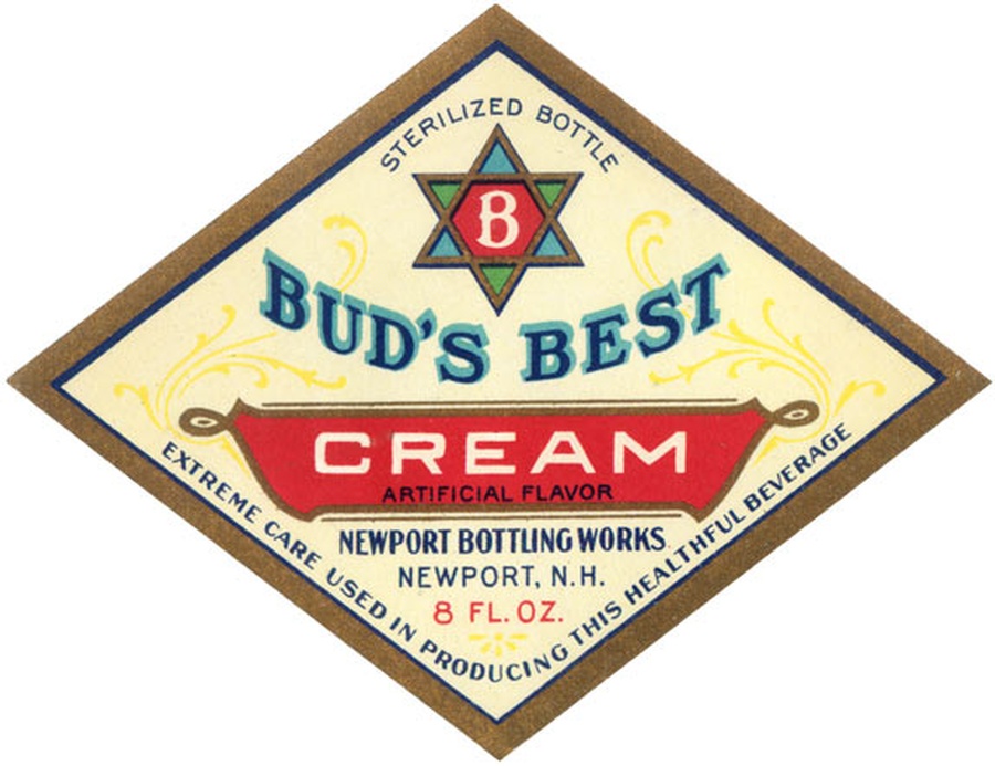This vintage Bud's Best Cream Soda label is circa Mid 1920s. The label is 4.75" Wide x 3.5” High, gilded around the edges, and in mint unused condition. We found these unused mint condition labels at the Newport Bottling Works in Newport, New Hampshire. In 1922 the Newport Bottling Company started manufacturing carbonated beverages.