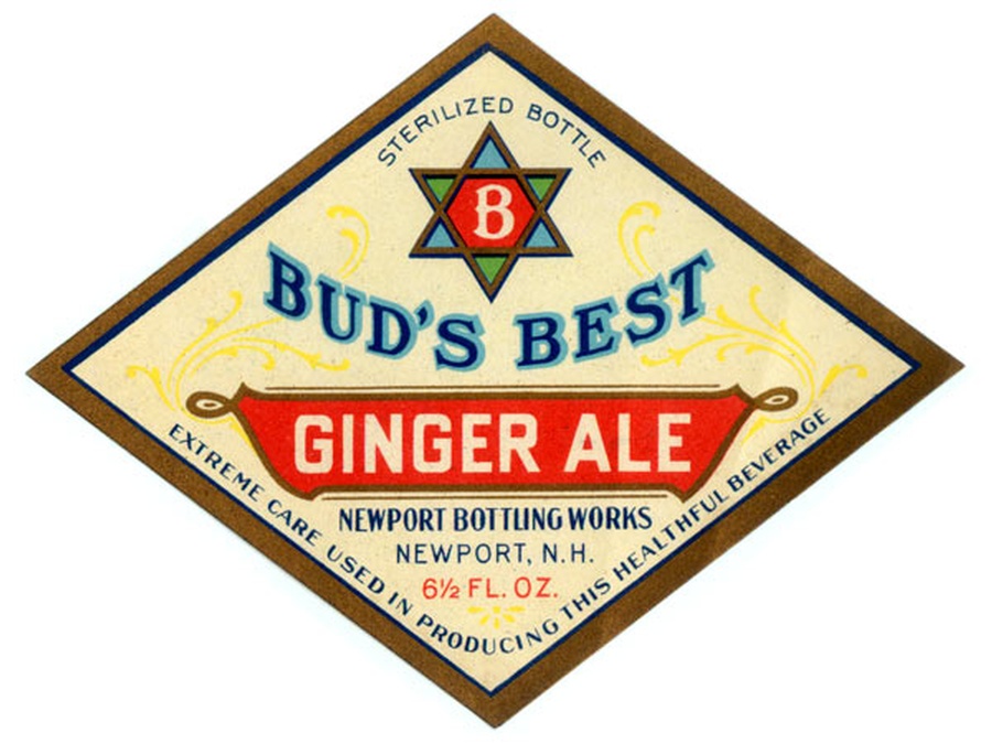 This vintage Bud's Best Ginger Ale label is circa Mid 1920s. The label is 4.75" Wide x 3.5” High, gilded around the edges, and in mint unused condition. We found these unused mint condition labels at the Newport Bottling Works in Newport, New Hampshire. In 1922 the Newport Bottling Company started manufacturing carbonated beverages.