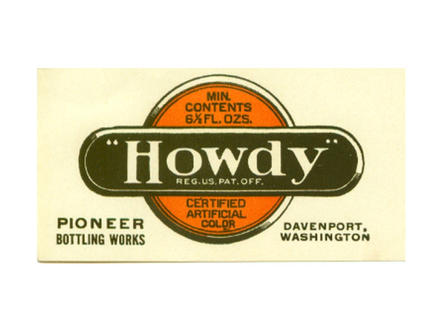 This friendly label measures 3.9” Wide x 2.2” Tall and was for “Howdy” Orange Soda produced by the Pioneer Bottle Works in Davenport, Washington. We think the label dates back to the 1920s – 1930s. Obviously, if you drank this soda you’d be saying Howdy to just about everyone you met.